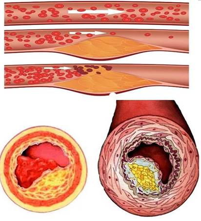 Esta sustancia, esta en la sangre, se asienta en las paredes de los vasos sanguíneos. Primero una pequeña placa (durante 20-25 años), luego la capa de colesterol aumenta rapidamente (25-40 años), a medida que la capa pegajosa se mantiene, cada vez se le adhieren mas partículas. COMO RESULTADO, A LOS 40 AñOS, EL COLESTEROL REDUCE EL ESPACIO EN LOS VASOS HASTA CASI LA MITAD. En respuesta, el corazón no tiene mas remedio que aumentar la presión. La persona presente altibajos de presión e hipertensión relacionada con la edad con todo lo que esto conlleva. ¡Pero ni siquiera eso es lo peligroso!